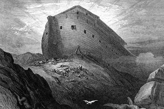 この時、神はノアに言われた、「あなたは妻と、子らと、子らの妻たちと共に箱舟を出なさい。あなたは、共にいる肉なるすべての生き物、すなわち鳥と家畜と、地のすべての這うものとを連れて出て、これらのものが地に群がり、地の上にふえ広がるようにしなさい」