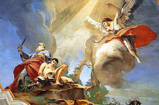 そしてアブラハムが手を差し伸べ、刃物を執ってその子を殺そうとした時、主の使が天から彼を呼んで言った、
