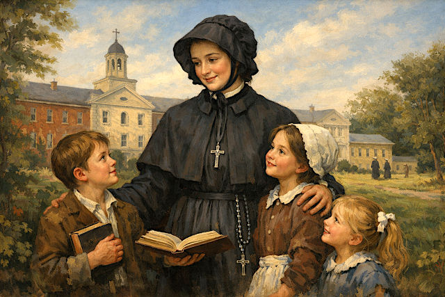 1809年には聖ヨセフ修道女会を設立し、後にメリーランド州エミツバーグで貧しい子どもたちのための学校を開きました。