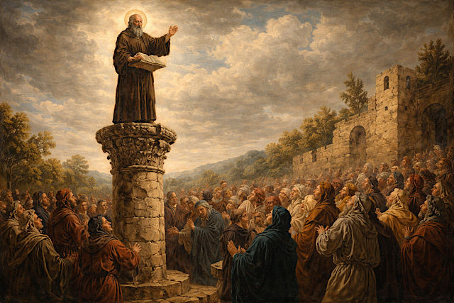 聖シメオンの信仰の中心にあったのは、祈りと悔い改めです。彼は自分を高めるためではなく、神に心を向け続けるために柱の上に立ちました。